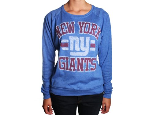!±8±NFL New York Giants Women's True Vintage Distressed Triblend Crew Neck Long Sleeve Pullover, Liberty, X-Large